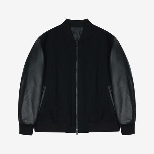 [지이크]F/W 럭셔리 울 배색 바시티레더 블랙 자켓 PJG9005