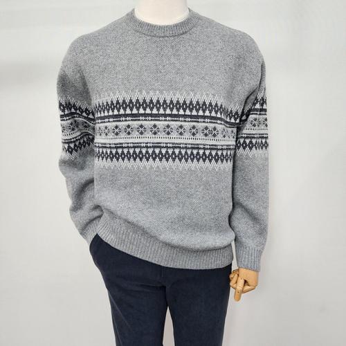 [파렌하이트]모혼방 노르딕 패턴 라운드 니트 그레이_U16FL