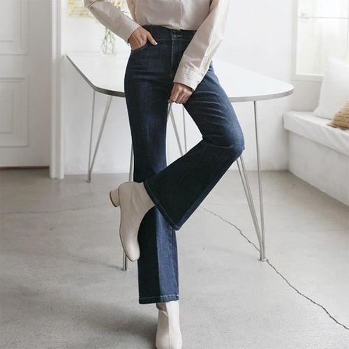 [옷자락]여자 하이웨이스트 생지컷 투버튼 스판 나팔청바지 팬츠