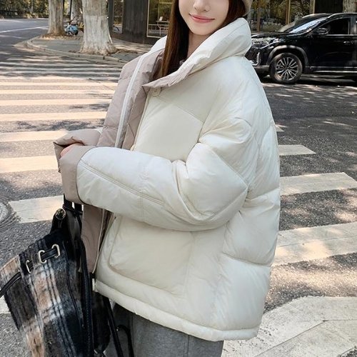 [패션시그널] 버튼앤지퍼락 배색라인 패딩점퍼 CE17BF