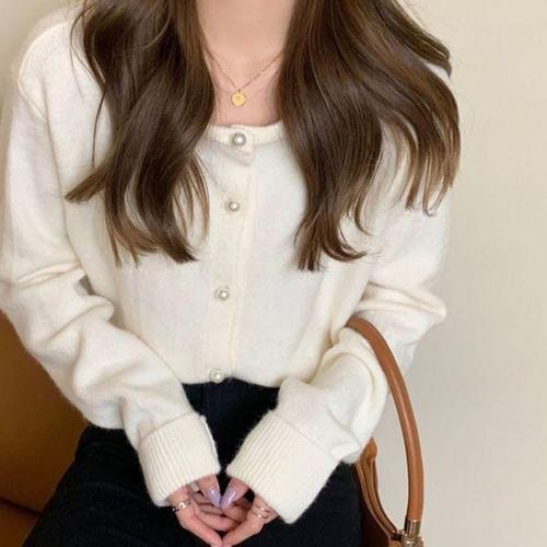 [다잇템]여자 진주알 롱슬리브 U넥 스웨터 가디건