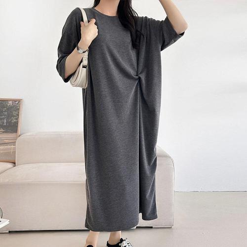 [다잇템]여성 집에서 입는 반소매 트위스트 롱드레스