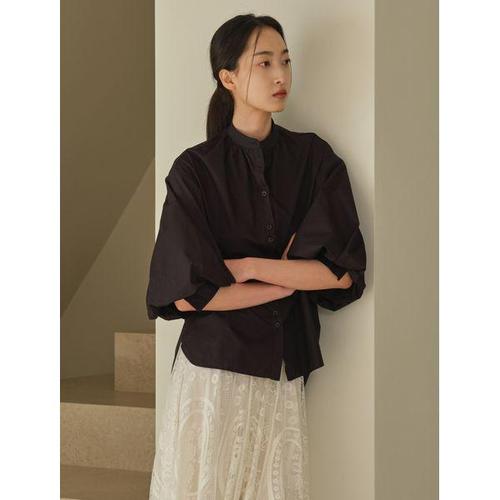 [미니멈 에브리데이]투버튼업 포인트 차이나 카라넥 반팔 셔츠 (EB2BA007D)