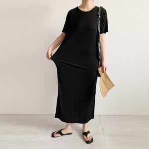 공구리빙 여성 트임 반팔 찰랑 롱원피스 시원한 여름 데일리 캐주얼 원피스