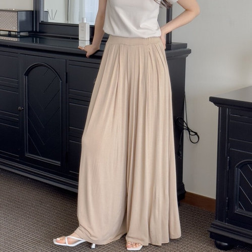 [에이치플러스몰]여자 여름 통바지 시원한 쿨링 찰랑 밴딩 플리츠 와이드 팬츠