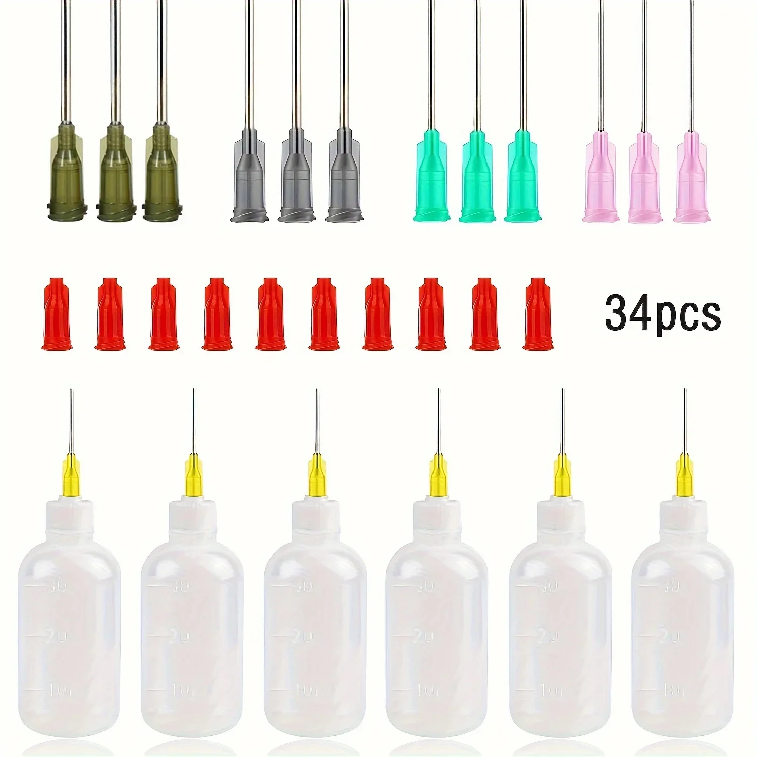 34피스 정밀 접착제 도포기 키트 – 공예 및 수리용 무딘 바늘 팁(14/16/18/20ga)이 있는 30ml 압착 병 4개