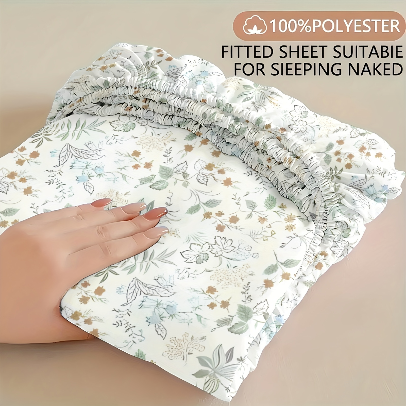 TEMU 녹색 잎사귀 플로럴 침대 시트 1개, 킹 사이즈, 퀸 사이즈 및 풀 사이즈 침대에 적합, 통기성 좋은 라이트 베이지, 침구, 주름 방지, 깊은 포켓, 세탁기 사용 가능, 가정 침실 장식, 킹 사이즈 매트리스, 풀 사이즈 매트리스 커버