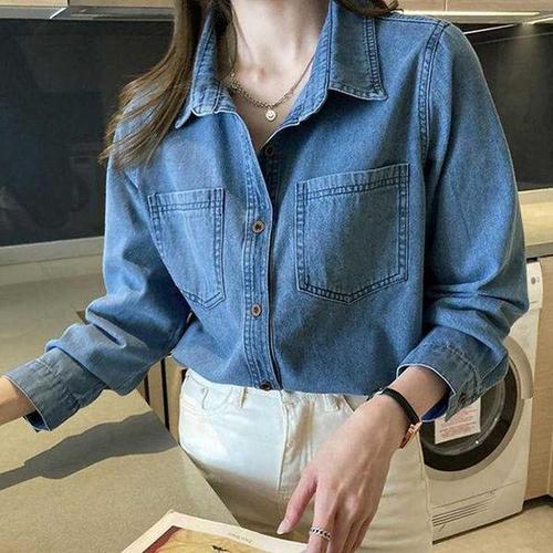 여성 포켓 데님셔츠 빈티지 캐주얼 청남방 카라셔츠 빈티지 청남방 캐주얼