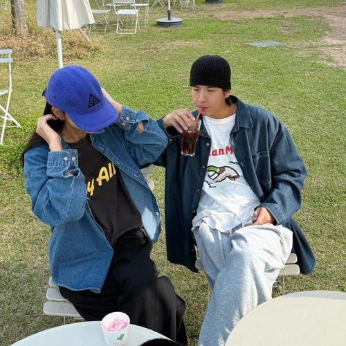 봄셔츠 남녀공용 청남방 라인배색 데님셔츠 빅사이즈 남자카라남방