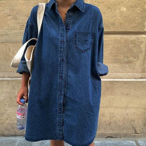 여성청셔츠 여성 빈티지 청남방 1P 루즈핏 봄가을 버튼 데님 셔츠