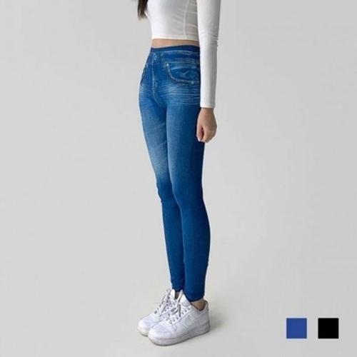 블루 워싱 기모 청레깅스 데님룩 청바지 융털레깅스