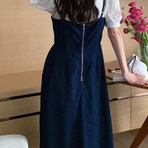 G125689뷔스티에 서스펜더 청원피스 데님원피스