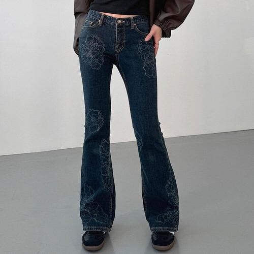 [옷자락]여자 Y2K 플라워 프린팅 슬림핏 부츠컷 포켓 청바지