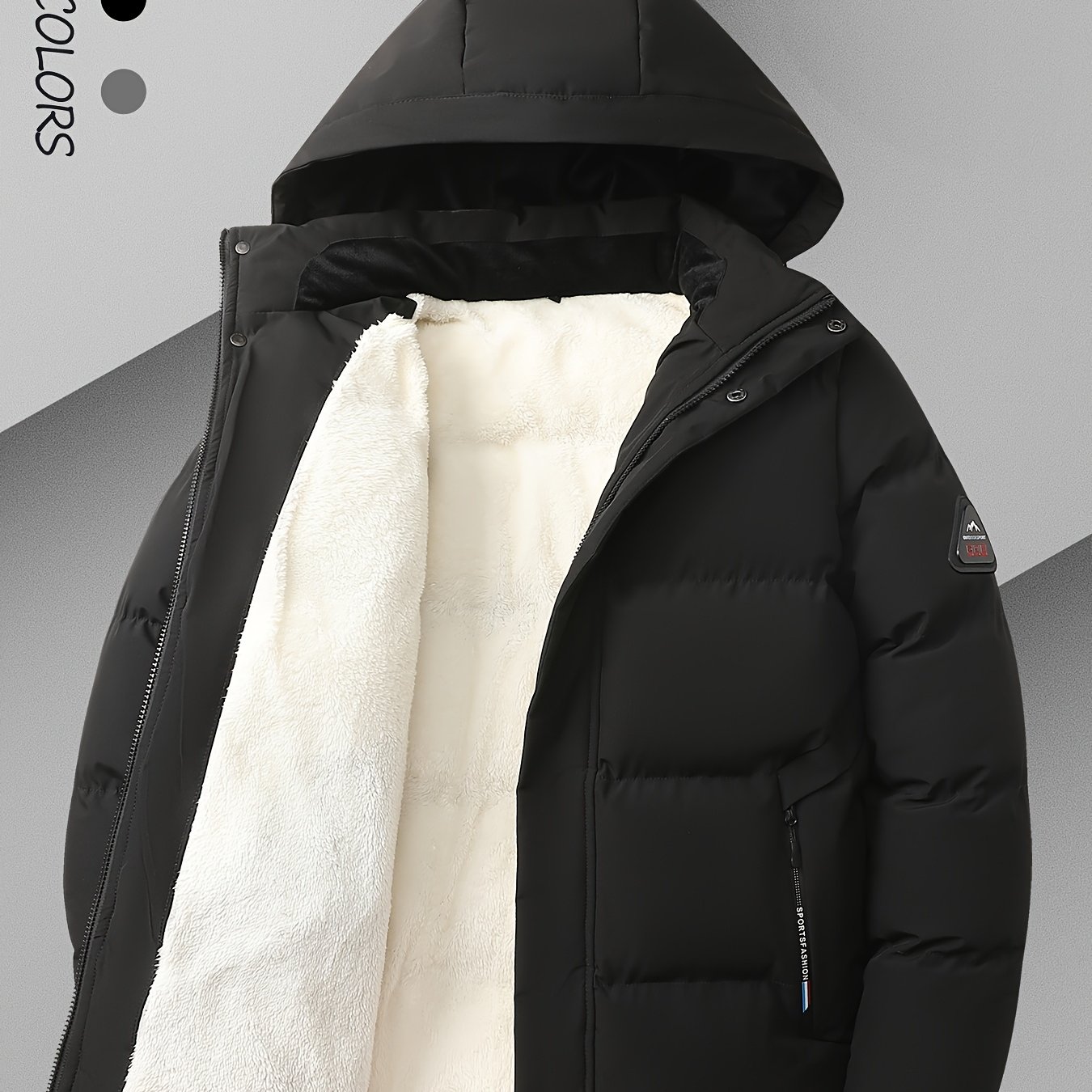TEMU 남성용 겨울용 따뜻한 후드 패딩 코트 - 전체 지퍼, 손세탁 가능, 단색 캐주얼 아우터웨어, 추운 날씨에 적합