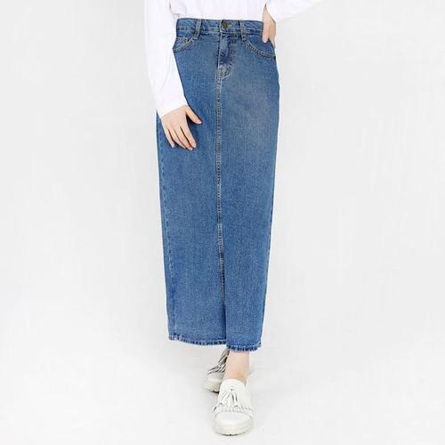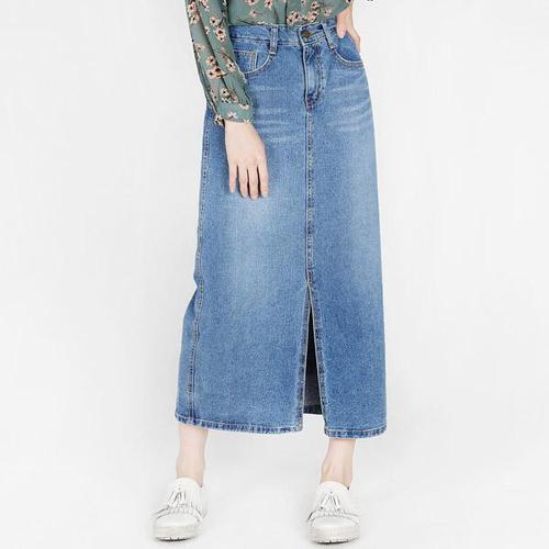 여성 청치마 데님스커트 롱 스커트 밑단 슬릿 H라인 (WFKBA1P)