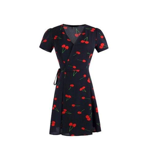 [에이치플러스몰]반팔 인기 여성 체리 랩 감성 원피스