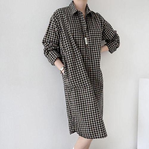 [신상오픈런]여성 가을 체크 롱셔츠 원피스 투웨이 포켓 스타일