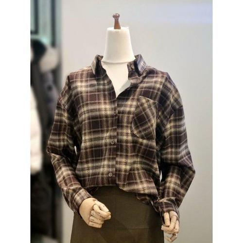 [ab.f.z]브이 체크 롱셔츠 블라우스 FSPZZ3B39H