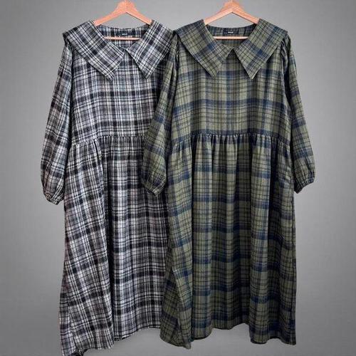 [신상오픈런]여성용 사랑스러운 박시 임부복 빅카라 체크 퍼프 롱드레스