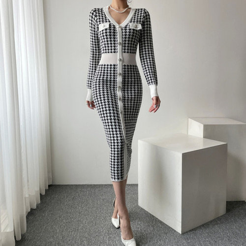 글램핏 / 하운드체크 은장단추 슬림 하객 오피스룩 롱원피스 2