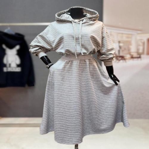 [비바앤코코넛]페미닌 스트라이프 후드 롱 원피스