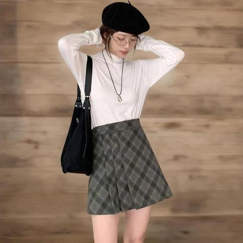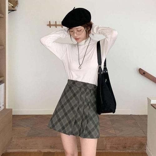 [옷자락] 여성 키치무드 격자체크 바지내장 반주름 미니 스커트