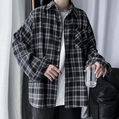 남자남방 남자 체크셔츠 루즈 남녀공용 캐쥬얼 긴팔