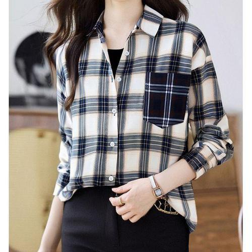 [패션시그널]원포켓 체크셔츠 블라우스 D7DB42