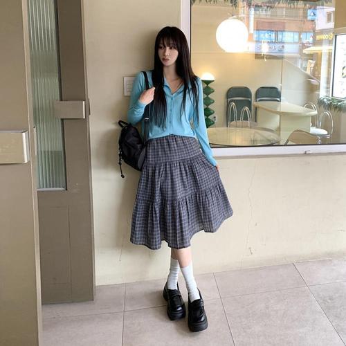 [옷자락]여자 데일리 코튼 체크 캉캉 스커트