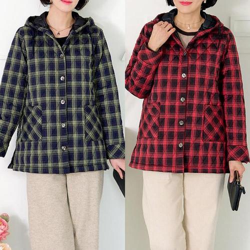 [모슬린]엄마옷 3온스 체크후드 누빔자켓 MQG124386 마담/미시옷/중년여성의류/빅사이즈/50대/60대여성옷
