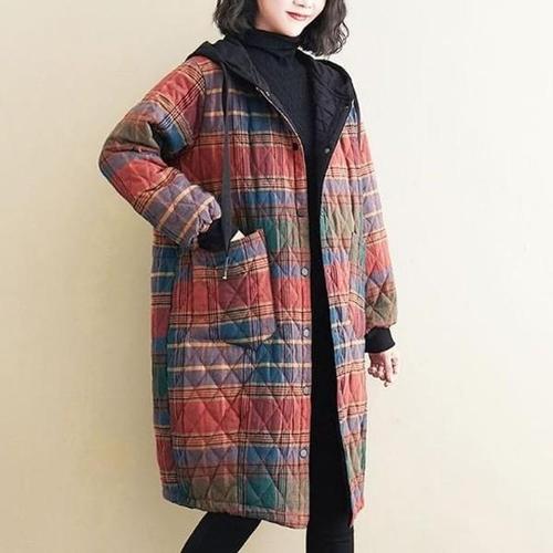 [드리다]여성 겨울 부클 체크 빅사이즈 후드 롱 누빔 점퍼 40-50대 미시 중년여성 엄마옷 캐주얼 출근 모..