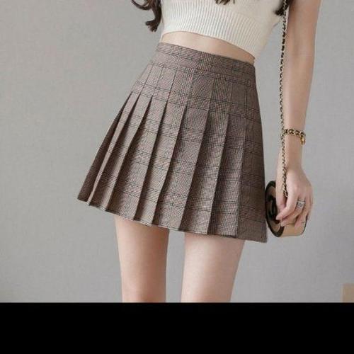 EAMT 여성 체크 스커트 가을 겨울 중기장 플리츠 하이웨스트 A라인 YJ4