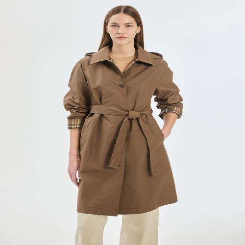 브라운 후드 리버시블 체크배색 트렌치코트 (DLCO5DE93W2)