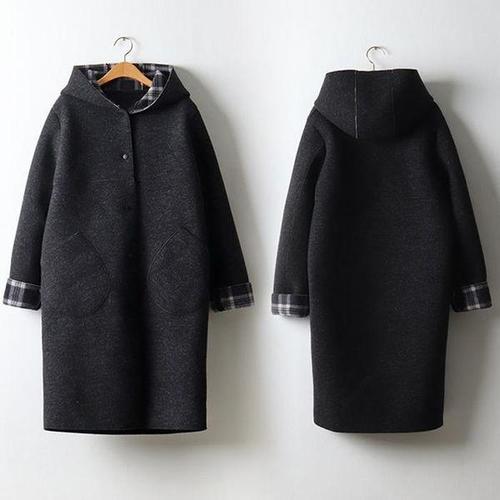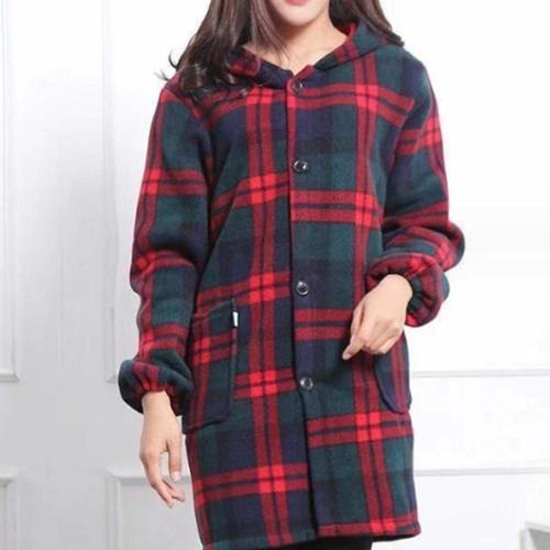 체크 후드 코트 여성 겨울 플리스 가을 롱코트 WFLRZKA