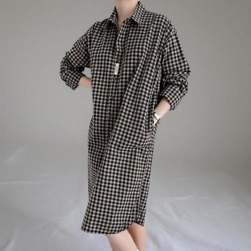 [신상오픈런]여성 클래식 체크 롱 스커트 레이온 뒷밴딩 격자 디자인