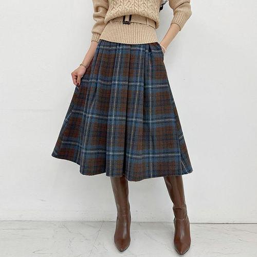 H스타일(SK)울체크미디스커트 겨울 여성 미디 스커트 치마 울 모직 밴딩