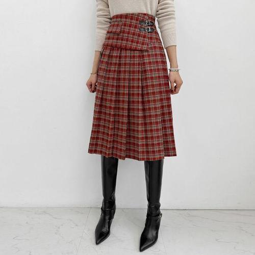HOTBBA / A라인 체크 밴딩 롱스커트 SNY_1004945