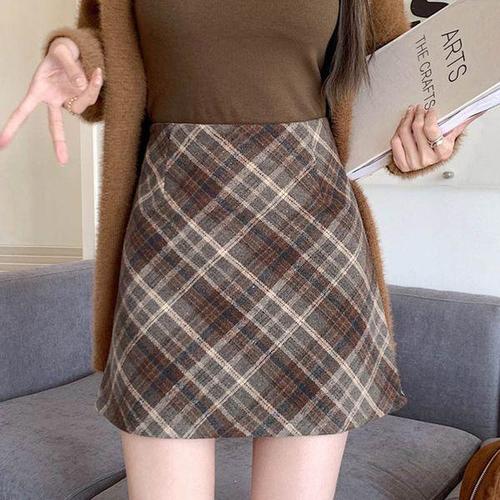라지 여성복 배 가려 날씬하고 통통한 여자 니트 스커트 가을 겨울 하이웨스트 체크 스커트 18565