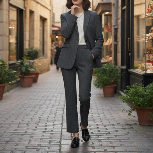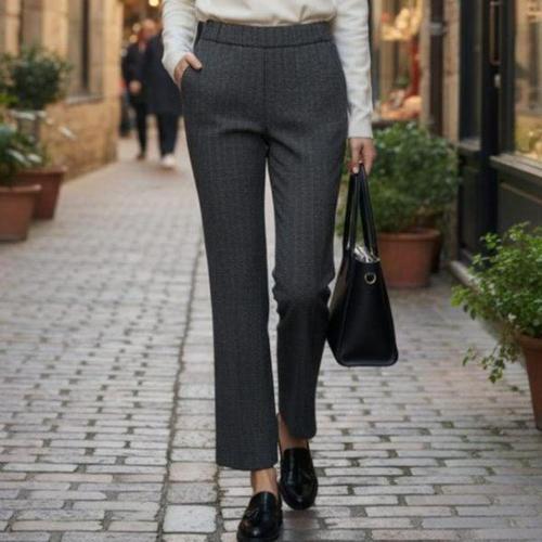 [옷자락] 여성용 잔체크 무지 슬랙스 뒷밴딩 클래식 모직