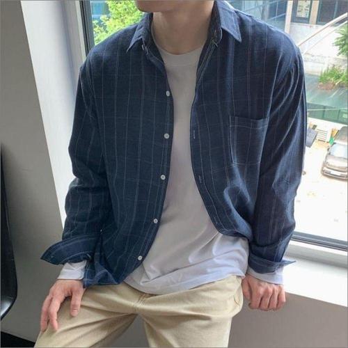 남성용 긴팔 체크 셔츠 캐주얼 와이셔츠 남방 디자인 WFLM0BY