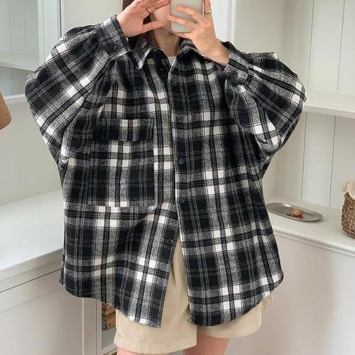 [셀러허브_여성트랜드패션]여자 겨울 융안감 체크 셔츠_WSH14654