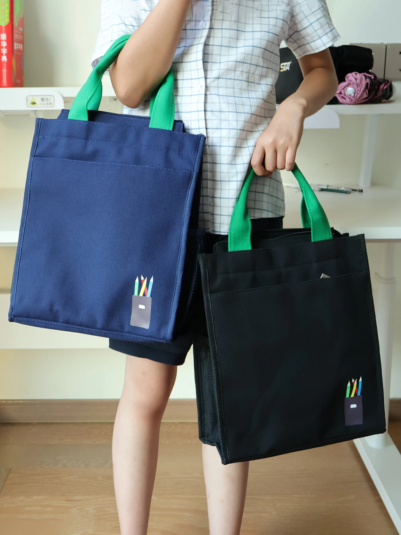 중학생 및 초등학생이 복습과 수업 외 활동을 위해 책을 들고 다닐 수 있는 만화 캔버스 핸드백 A4 책가방