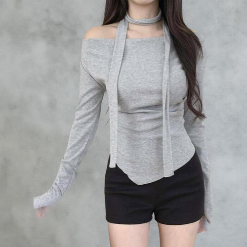 티셔츠 초커 오프숄더 슬림핏 긴팔티 크롭티 (3y5vJ)