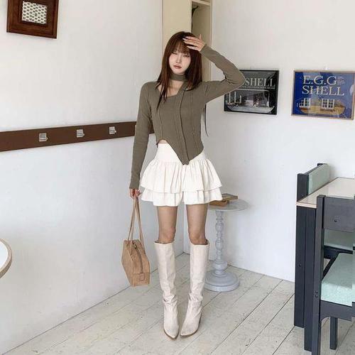 [다잇템]여성 언발 키치무드 스트랩 초커 슬릿 니트