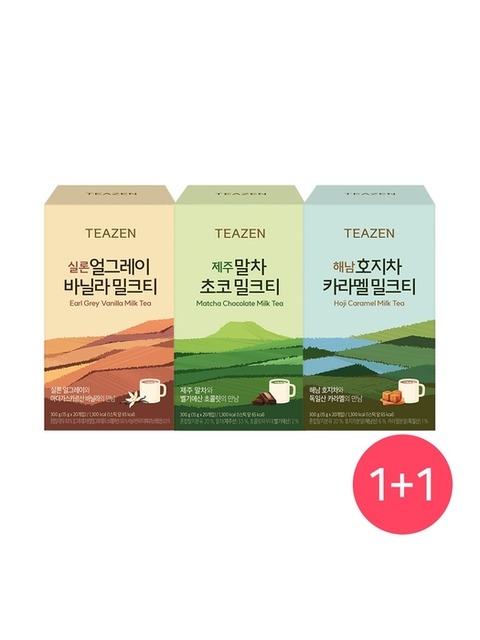 [티젠] [1+1] 티젠 밀크티 20스틱 (말차 초코, 얼그레이 바닐라, 호지차 카라멜)