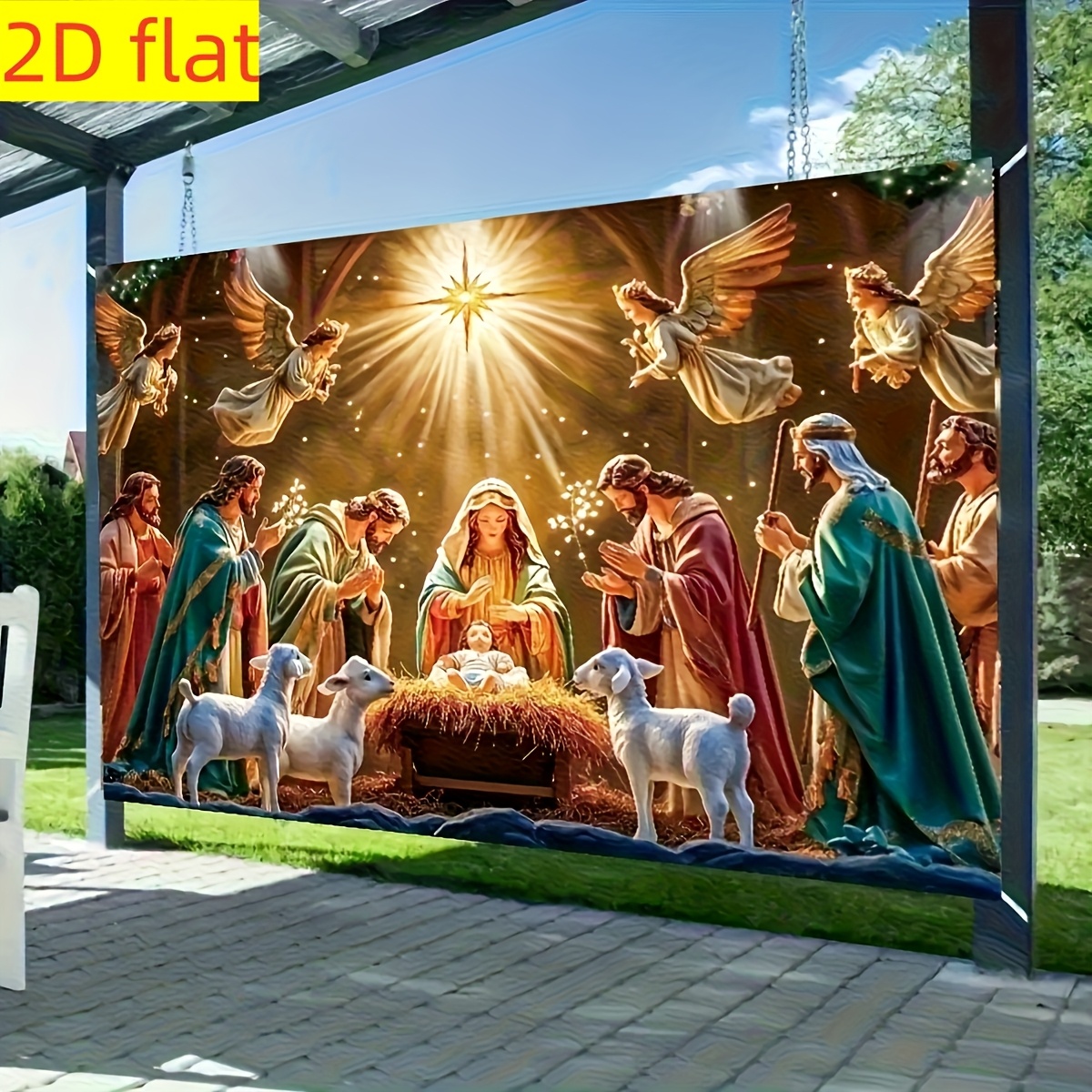 TEMU 2D 평면, 1개 클래식 성탄 장면 (천사 & 양치기) - 실내/실외용 종교적 크리스마스 장식, 크리스마스 축하에 적합, 내구성 & 쉬운 청소, 교회용 휴일 장식, 천사 & 양치기 포함, 2D 평면
