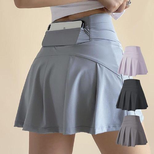 TEMU 여성용 하이웨이스트 플리츠 러플 스코트 - 캐주얼 여름 솔리드 블랙 반바지, 신축성 있는 허리띠, 가벼운 폴리에스테르로 캐주얼한 의상, 여름 캐주얼 의상 | 하이웨이스트 스코트 | 스타일리시한 와이드 레그, 하이웨이스트 스커트 반바지