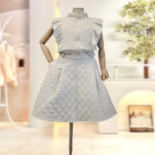 [스타일리쉬바이피클]프릴 다이아 누빔 패딩 조끼 스커트 투피스