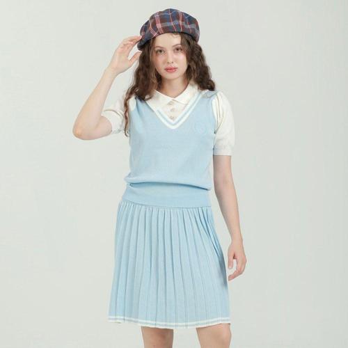 [에이치플러스몰]큐티 여성 니트 조끼 여자 베스트 스커트 세트 2색