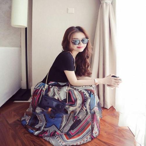 [에이치플러스몰]여성 투피스형 여름 반팔티 플레어스커트 롱원피스